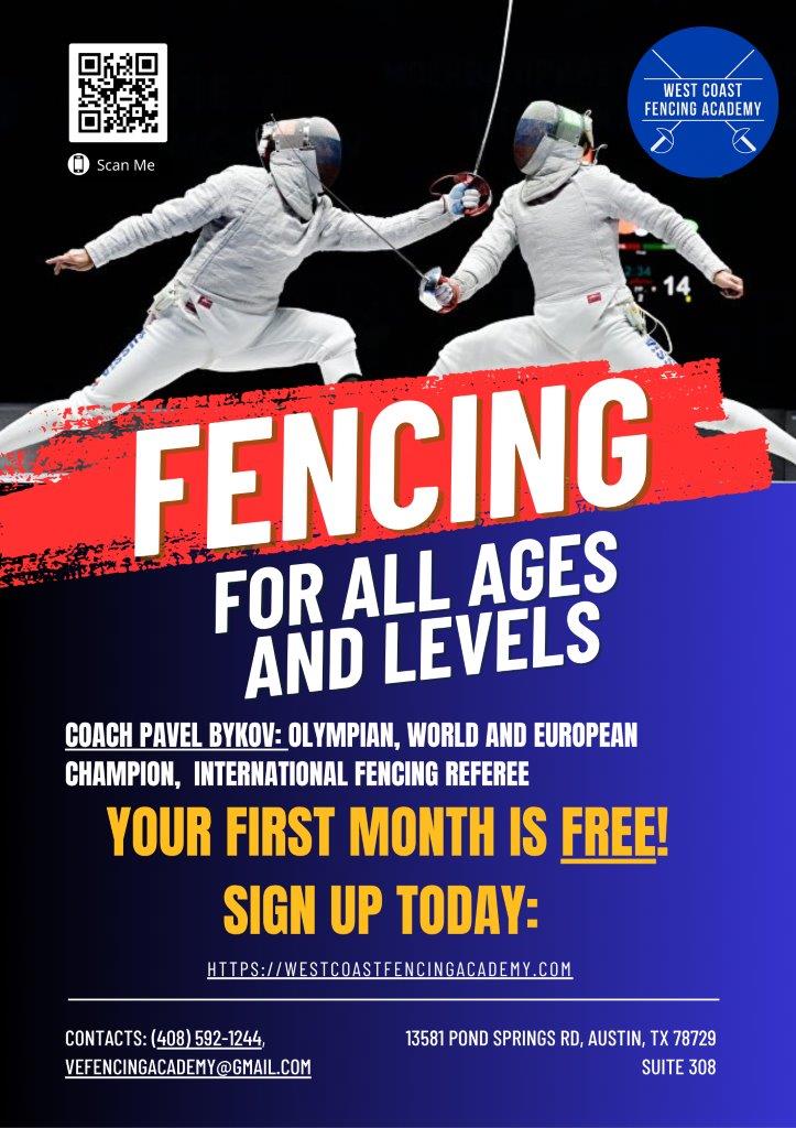 My name is Pavel Bykov, and I am a sabre fencing coach. In the summer of 2025, I opened West Coast Fencing Academy – Austin, a fencing club for children and adults.